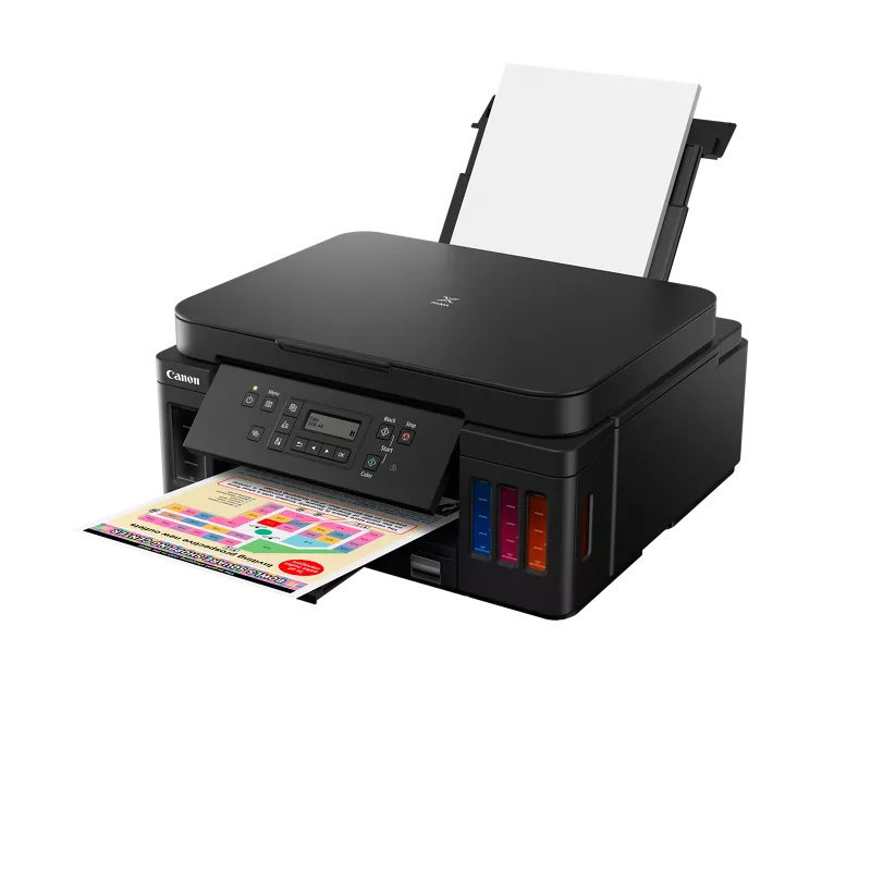 The Canon PIXMA G6020 is a wireless all-in-one printer equipped with the innovative MegaTank ink system, designed for high-volume printing with ultra-low ink costs. It offers high print speeds of up to 13 pages per minute for black and 6 pages per minute for color, making it perfect for both home offices and small businesses. The printer features wireless connectivity, allowing printing from smartphones, tablets, and computers. The G6020 also includes scanning and copying functions and is capable of handling large print jobs efficiently with its 350-sheet paper capacity. With the MegaTank ink system, users can save significantly on ink costs while maintaining excellent print quality.