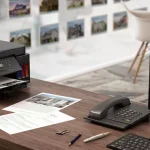 Wireless all-in-one printer with MegaTank ink system for high-volume printing.